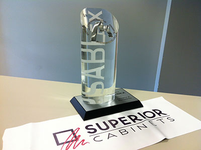 Superior Cabinets was honored on May 9th, 2013 by the Saskatoon Chamber of Commerce with the SABEX Award for Growth and Expansion. This accolade is awarded to the business that has made significant changes in their business resulting in “Growth” or “Expansion” of 15% or more of business markets.