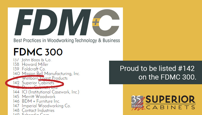 The FDMC 300 is a group of the 300 largest cabinet, furniture, millwork, store fixture, office/contract and component producers in North America and Superior Cabinets was honored with the 142nd spot. Congratulations to all of the other incredible business that made the list. Full list: